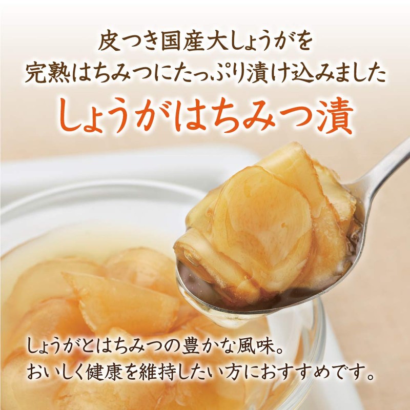 "Ginger Honey Pickle" is made with Japanese ginger slices and dipped in 100 flower honey. We use only the large and nutritious "big ginger" and the crisp, sweetest honey. By leaving ginger skin and soaking it in honey we use the aroma of ginger and pokapoca ingredients contained around the skin of ginger.
