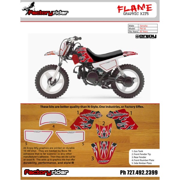 Yamaha PW 50 RED FLAME GRAPHICS KIT MOTOCROSS DECALS