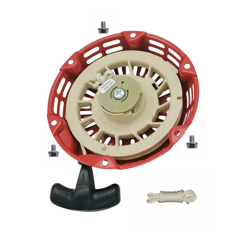 - The GX160 pull start assembly is 410g(much heavier than low cost products), red color, plastic pawl, and it comes with an OEM nylon 66 solid braided rope compatible with Honda pull cord in 4.0mm diameter. The diameter of the rachet and the plastic housing is 51mm. Center to center of bolt hole is 139mm( triangle pattern), 160mm(hole to hole center through starter centre point).