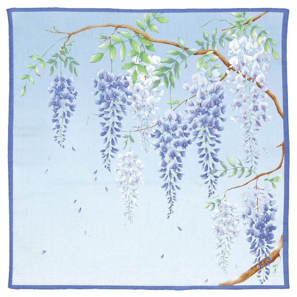 Yamamoto Hitoto Shoten Hyakka Ran Modern Yuzen Large Handkerchief Wisteria B Blue [1925-B] Floral Gauze Made in Japan