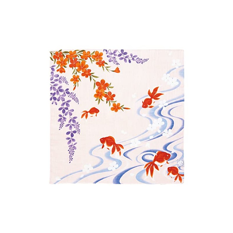 Yamamoto Hitoto Shoten Taisho Roman Handkerchief, Goldfish, A Pink [1836-A] Taisho Roman Japanese Pattern, Elegant, Made in Japan