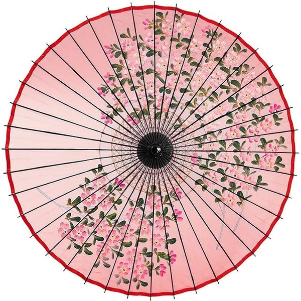 - Umbrella cloth: Silk, hand-painted cherry blossoms Bone part inside the umbrella: Decorative thread (4 colors) Accessories: Cloth bag
