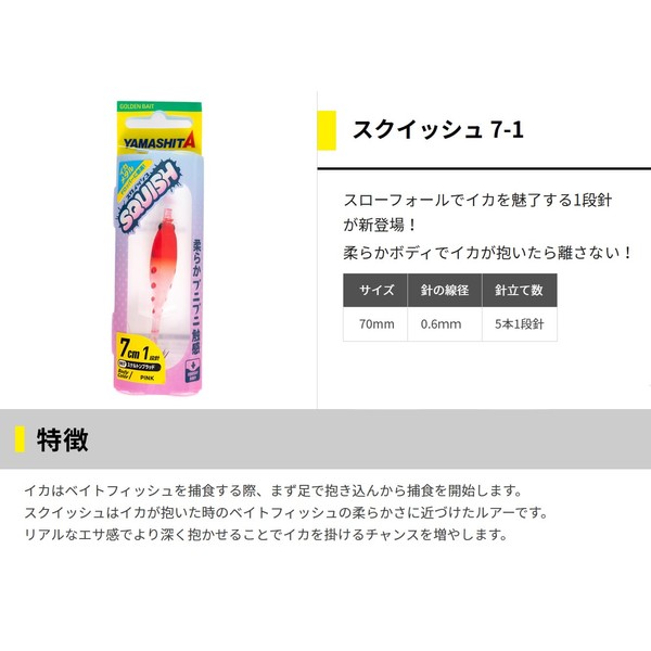 - (Single Needle Specification) Slow fall action compared to 2-level needles to attract squid