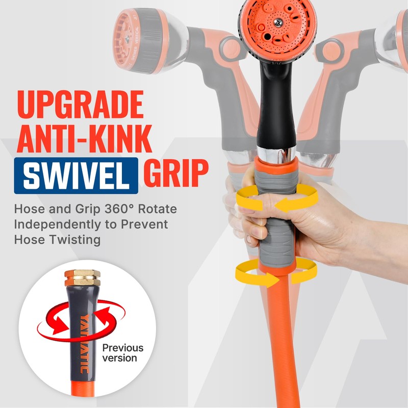 - Anti-Kink Technology - The fantastic flexible material allows the water hose to uncoil and lay flat as soon as first use and to snap back into shape to fight kinks as you drag it across the lawn, it features an industrial technology upgraded 360-degree swivel fitting, bringing your enhanced experience of kink resistance.