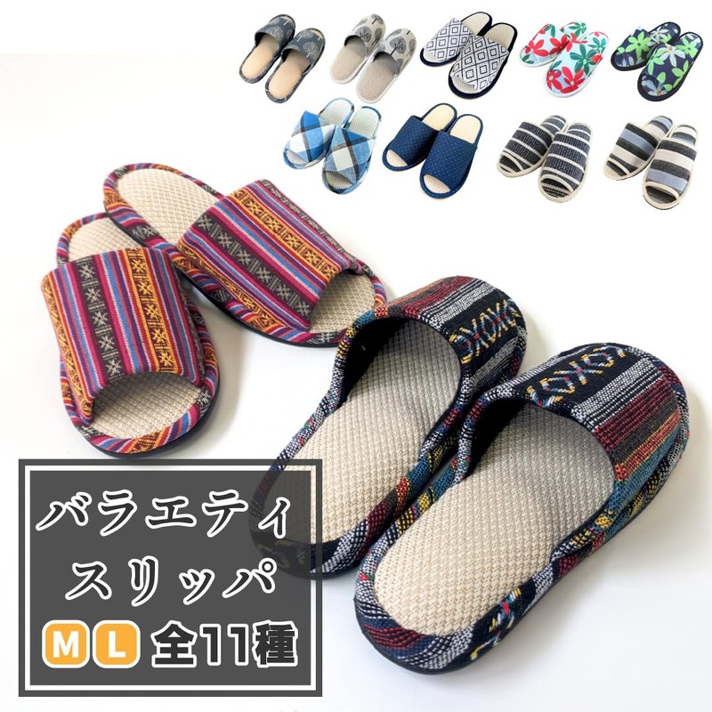Yamato Industry Variety Slippers, 9 Types, Size M, L Size, M/Scandinavian print pattern beige