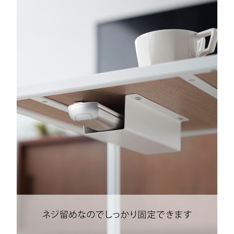 Yamazaki 4542 Undertable Handy Mop & Remote Control Holder, White, Approx. W 3.7 x D 7.1 x H 1.8 inches (9.5 x 18 x 4.6 cm), Tower Remote Control, Handy Mop Storage, Quick Use