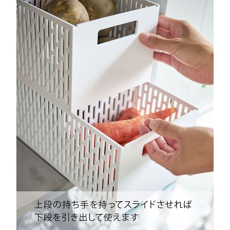 Yamazaki 5020 Stackable Vegetable Stocker, Tower Collection, White, Approx. W 6.0 x D 12.6 x H 4.8 inches (15.3 x 32 x 12.2 cm), Sliding Drawer, Storage For Root Vegetables