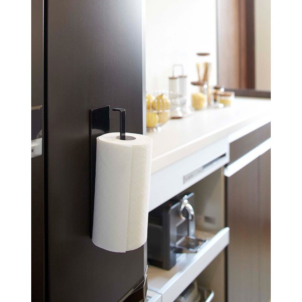 Yamazaki 7128 Magnetic Kitchen Paper Holder, Black, Approx. W 2.4 x D 2.0 x H 9.6 inches (6 x 5.2 x 24.5 cm), Tower, Can Be Placed in either Vertical or Horizontal Orientation, Kitchen Paper, Towel Hanger