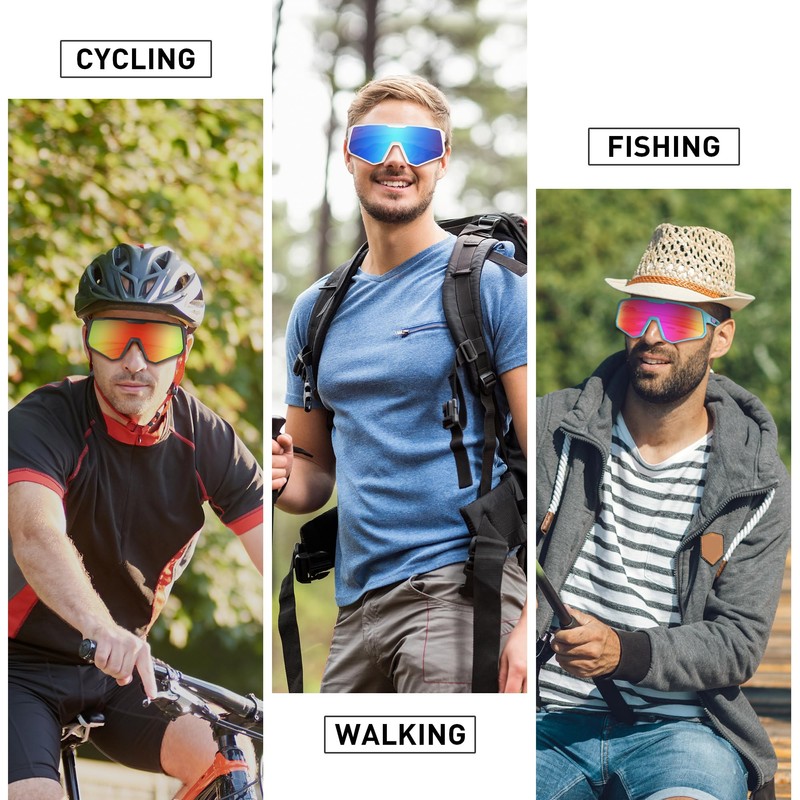 - Men's Sports Sunglasses - Designed to excel in any setting, whether you're cycling on rugged trails, running marathons, playing intense baseball games, or enjoying casual hikes. They are the perfect choice for a wide range of sporting activities, including:Mountain biking (MTB),Cycling,Baseball,Softball,Golf,Rock climbing,Fishing,Hiking,Running. These men sunglasses offer unparalleled performance and comfort, making them an essential accessory for any outdoor enthusiast.