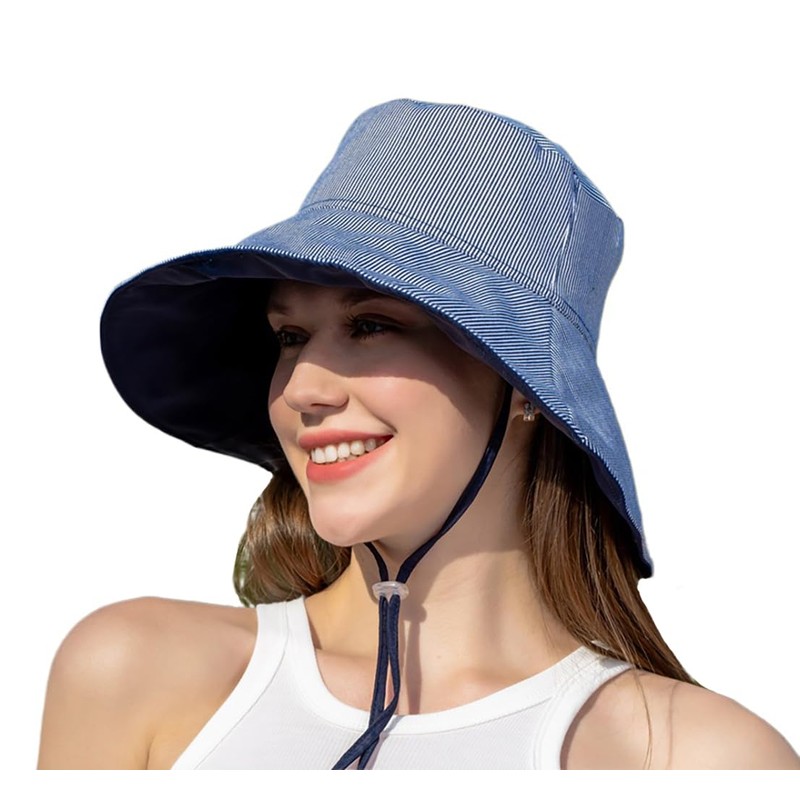 YAMEE Fishing Hat for Women Foldable Reversible Summer Sun Hat Women's Quick Drying Breathable Fishing Hat Men's Large Brim Sun Protection Bucket Hat Women's Adjustable Windproof Travel Hat, Dark blue