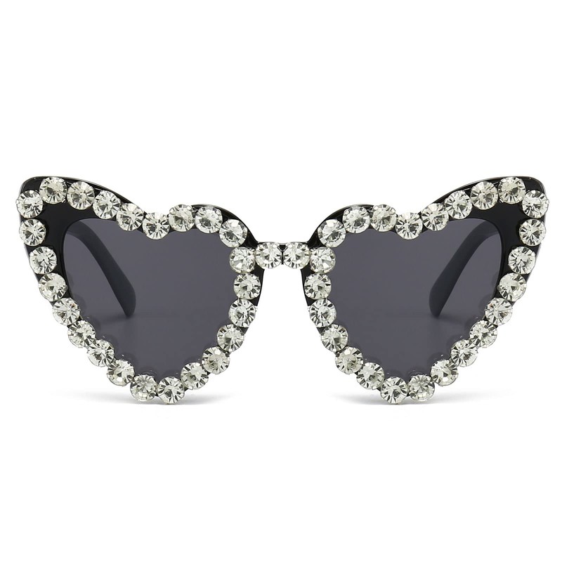 YAMEIZE 70s Trendy Rhinestone Heart Sunglasses - for Women Men Love Rhinestone Heart Shaped Diamond UV400 Party Driving, black