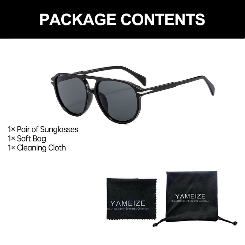 YAMEIZE Pilot Double Bridge Sunglasses for - Women Men Classic 70s Round Retro Style Sunglasses Shade Stylish Eyewear Driving (Black Grey)