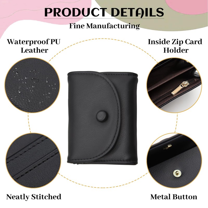 - SUFFICIENT CAPACITY: Our flip wallet measures 11*9*2.5 cm(4.33*3.54*0.98 INCH ), 1 zipper pocket, 2 inside card holders, 2 cash compartments,1 front card holder,1 back card holder with metal buttons.The campact size can meet your daily needs, can hold cash, credit cards, ID cards or photos etc.