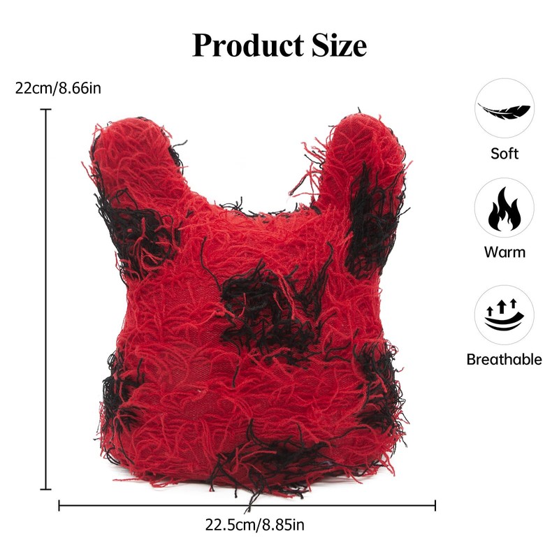 YAMEIZE Y2K Style Cat Ear Beanie - Hats for Women Men Gothic Knitted Beanie Cat Hat Winter Slouchy Party Custom Hat Outdoor Black Red