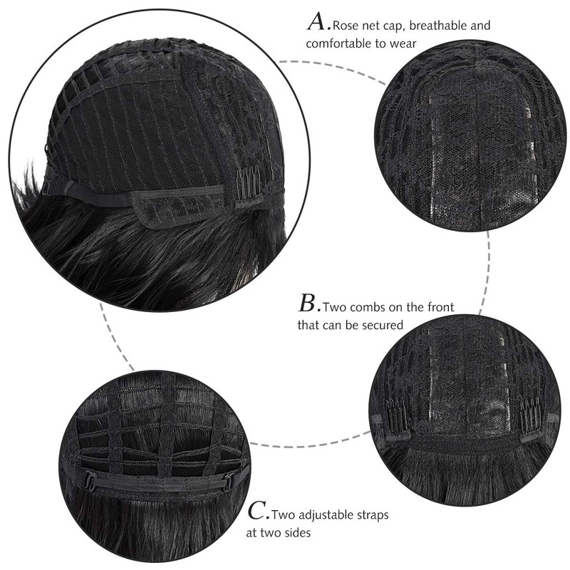 - Adjustable Wig Cap Design - 2 combs on the front help to fix and bring you secure wear. There are 2 adjustable straps at two sides of the cap that you can loosen or tighten until it achieves the most suitable state