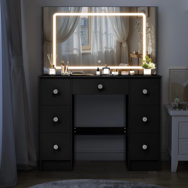 • Features: Mirrored, With Drawers, With Mirror, Flat Pack, Hidden Storage, Large Mirror, 7 Drawers, without stool, 3 Lighting Modes Brightness Adjustable
