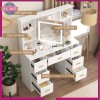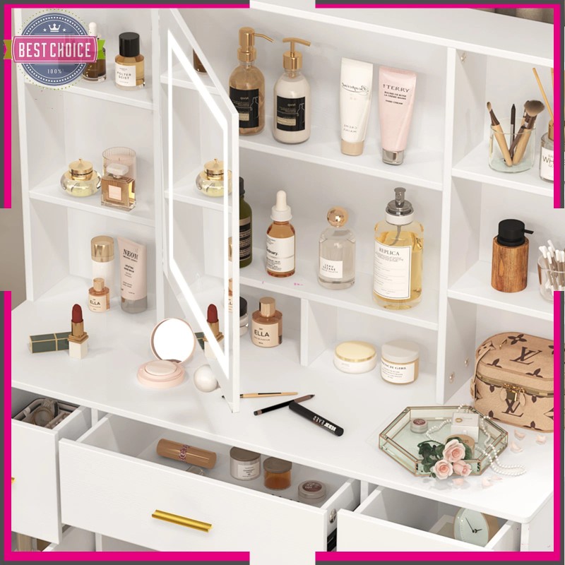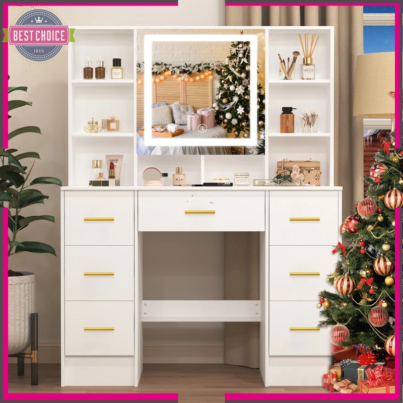 Yamissi Dressing Table with Opened LED Light Mirror and 7 Drawers White Vanity Desk
