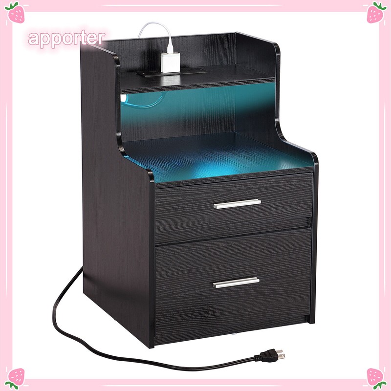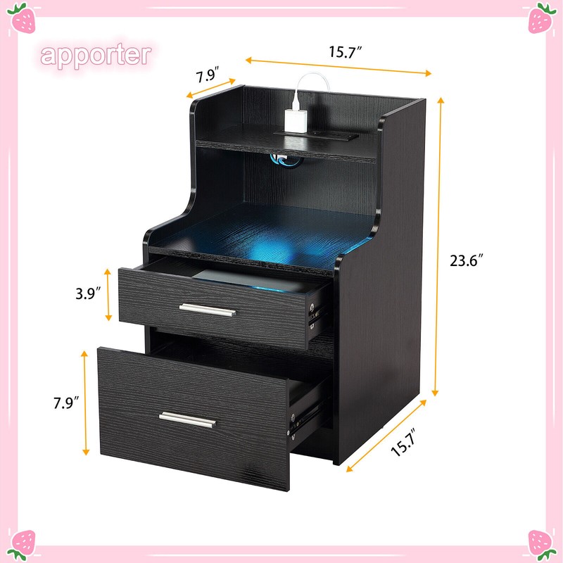 Easily adjust the light color according to your mood and enjoy the fabulous atmosphere created by LED nightstands. It's beautiful and stylish no matter whether it’s day or night! This nightstand with charging station is equipped with 2 drawers and 1 table top with a protective raised edge. Aesthetically pleasing and functional, it makes your life easier and keeps your room free of clutter.