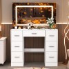 Yamissi Vanity Makeup Table Dressing Desk LED Lighted w/ Large Mirror and 7 Drawers US