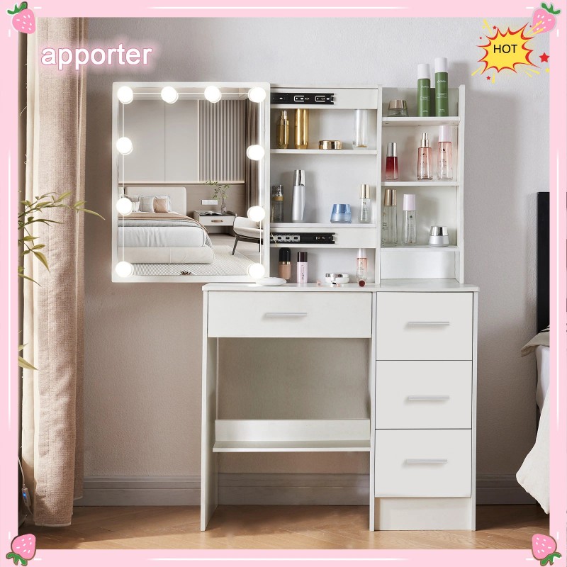 Three shelves behind left sliding mirror and on the right also provide additional storage space, which make your table more tidy