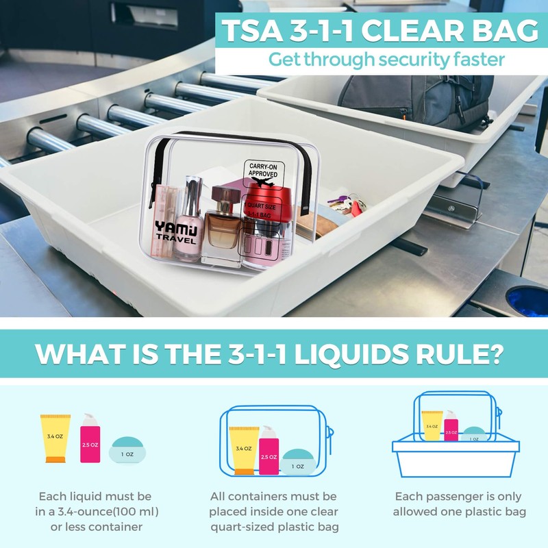 ---Extra travel quart bag for your travel size toiletries on airplane, quickly throught the security check than others. Not enough? Look, also a larger clear bag for you to fit the full size toiletries. 2-pack clear bags are waterproof, also fit for dirty/sweaty clothes.