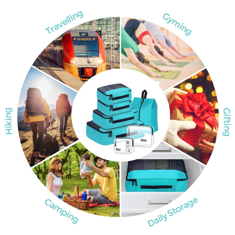 YAMIU Packing Cubes for Suitcases, 7 Pcs luggage organizer bags with Shoe Bag, 2 Waterproof Travel Toiletry Bags, Travel Cubes for Travel Essentials Travel Accessories