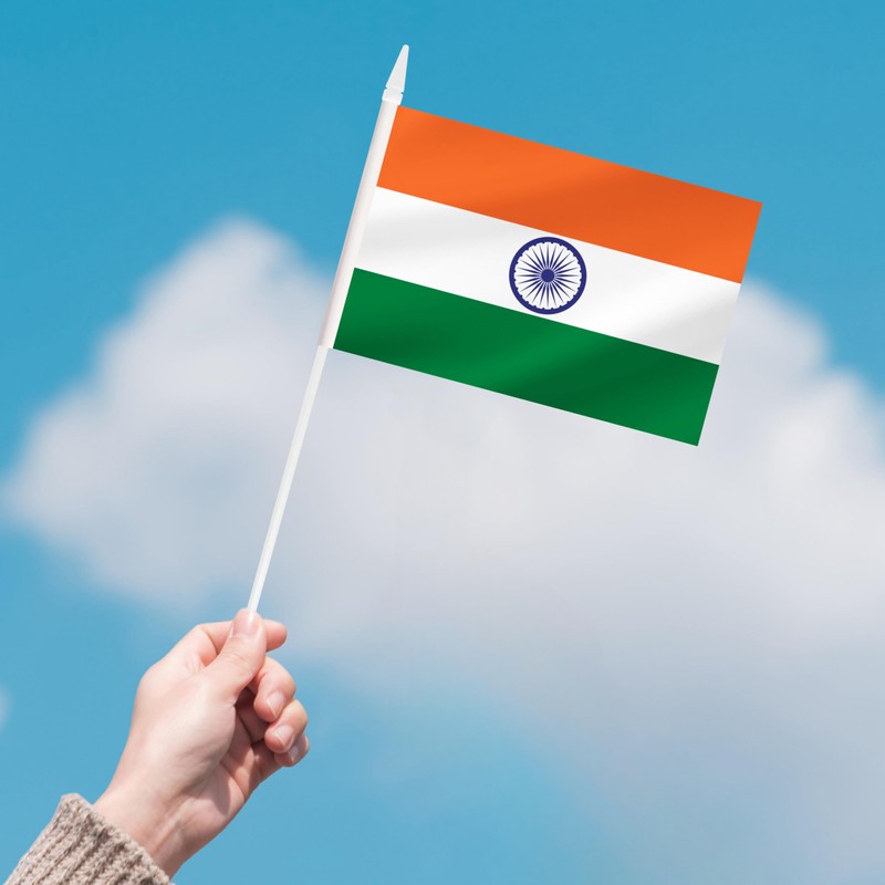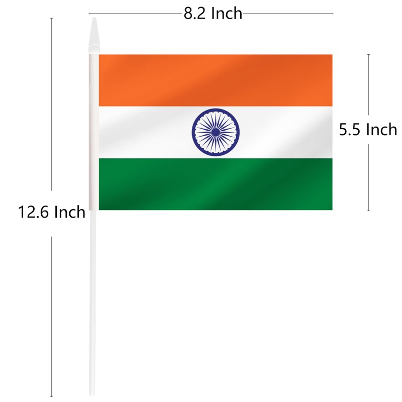 Yamiuo India Mini Flag, 12 Pack Indian Hand Held Small Mini Stick Flag with 12 Inch Solid White Pole, 8.2x5.5 Inch (India)