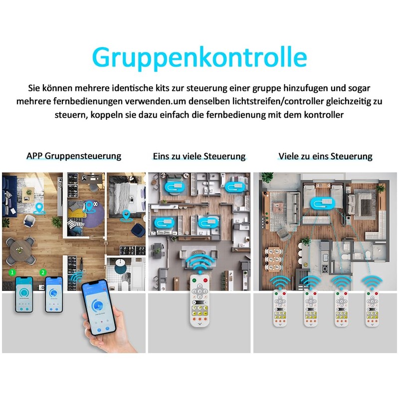 - Control methods: for monochrome strips, the usual control method is either Bluetooth RF or Alexa Voice. Our product is compatible with it and supports RF control, Alexa voice and app control, which is more intelligent and convenient.