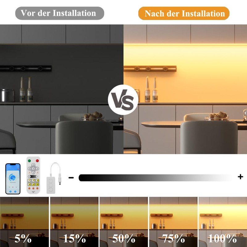 - Easy to cut and DIY: remove the protective sticker of the light bar, bend it at any angle (e.g. B. ±90° or bend it back twice) or cut it into small sections every 50 mm, then use the tape on the back to attach it to different places. Suitable for kitchen, wardrobe, bedroom, stairs, mirror, hallway lighting or TV/computer backlight.