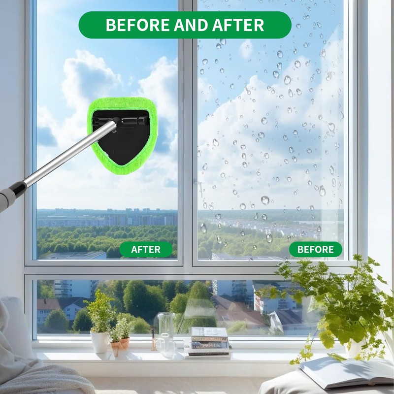 - Quick and easy to clean the car windshield, clean the interior and exterior of the car windows without effort. No more hurting your back. With the extra long extension handle and swivel head, it's easy to get to those hard-to-reach car window shelves