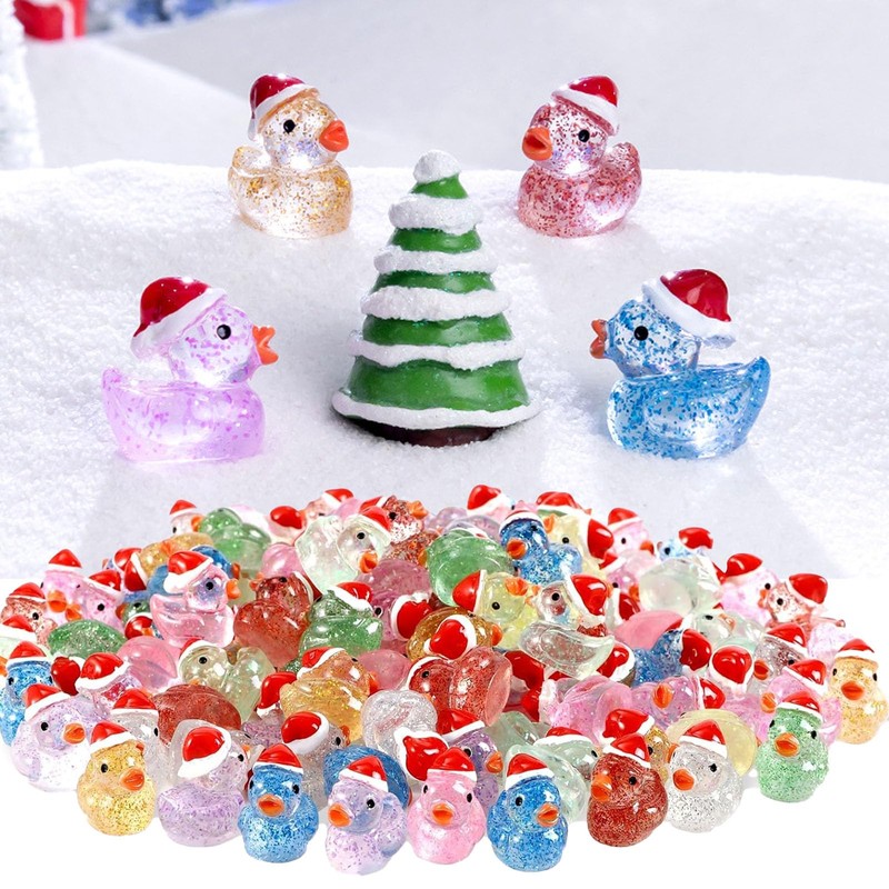 Yamobi Pack of 40 Christmas mini glitter ducks, colourful mini ducks, gnome accessories, tiny ducks made of resin for hiding, miniature duck figures made of plastic