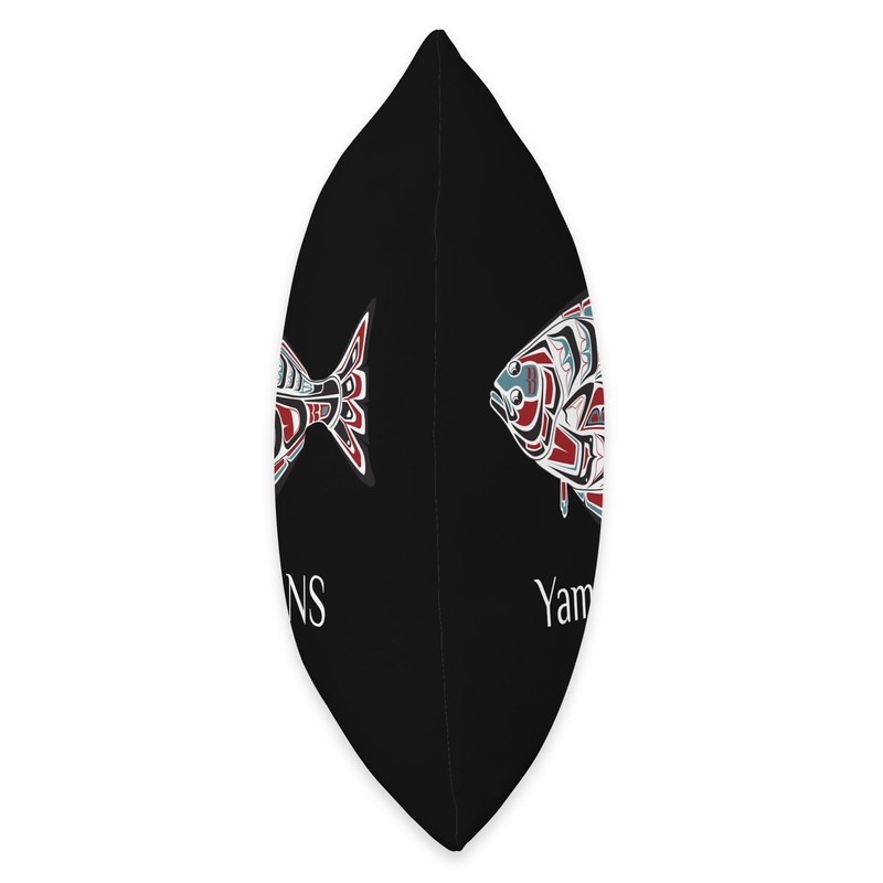 Yamouth Nova Scotia Native Halibut Fisherman Yamouth NS East Coast of Canada Halibut Native Fishers Throw Pillow, 18x18, Multicolor