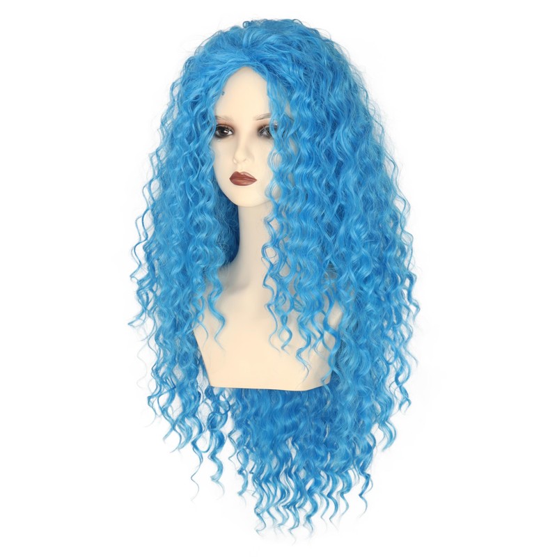 - Package Include: 1pc Women Long Blue Curly Wig , 1pack of Eye Decoration Sticker, 1pc Wig Cap