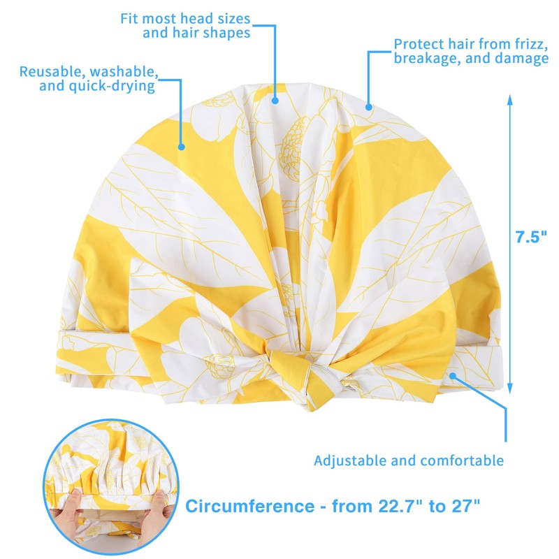 - Cute, Functional and Versatile: This cute shower cap has great quality and gives an elegant look while you shower or bath. It can also be used for make-up, beach and SPA.