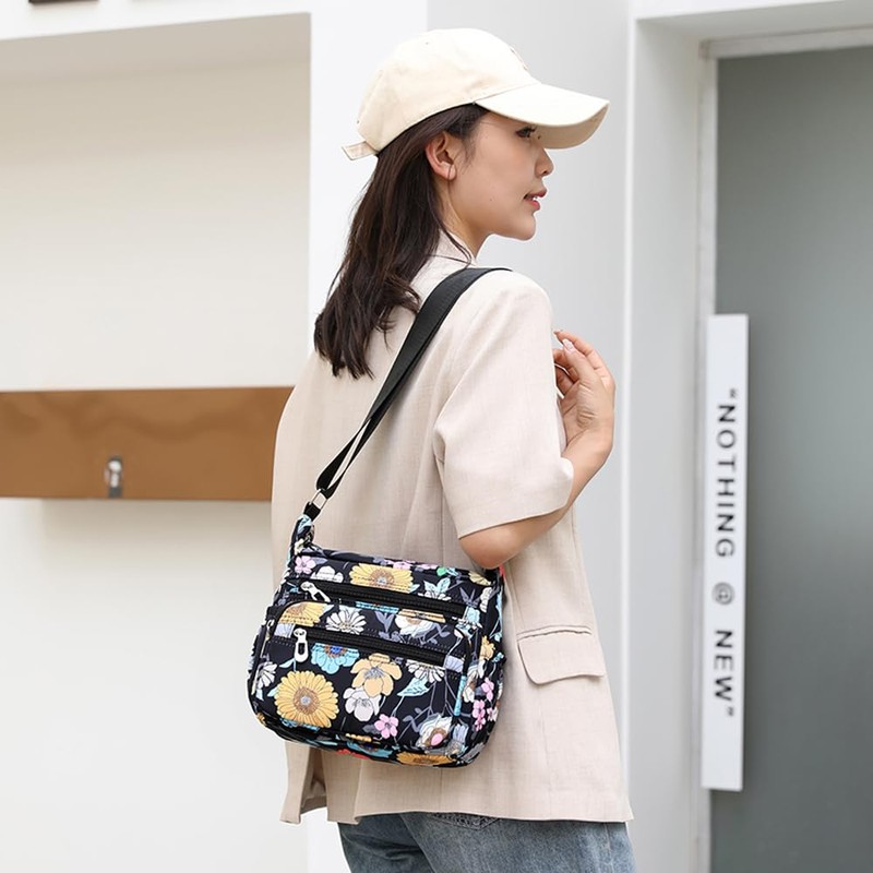 YANAIER Crossbody Bag for Women Ladies Multi Pockets Shoulder Bag Handbag Lightweight Nylon Casual Messenger Bag Travel Purse Gesang flower
