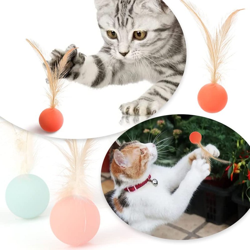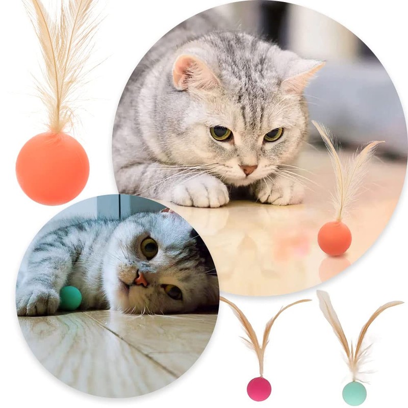 - 【Feather Design】The toy ball has feathers and bright colors, which can better attract cats' attention, improve the fun, and prolong their play time.