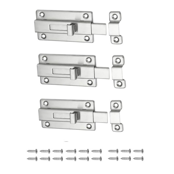 YANCAIYUNL 3 Set Door Bolt Locks Stainless Steel Sliding Bolt Latch Lock, Durable Small Plate Latches Garden Gate Lock for Securing Internal Doors for Bedrooms, Bathrooms, Cupboards and Storage Units(