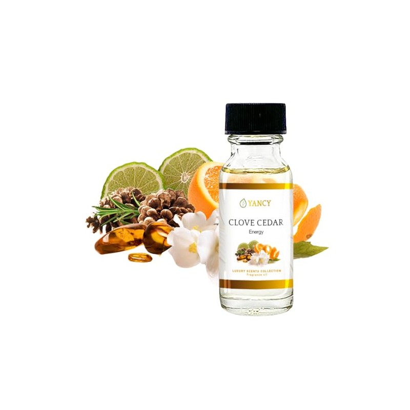 - YANCY Luxury Collection Fragrance Oil - Clove Cedar: An earthy and grounding scent that combines the spice of clove with the warmth of cedar wood. Clove Cedar offers a naturally soothing experience, perfect for creating a warm, cozy atmosphere that calms the senses and brings a touch of nature indoors.