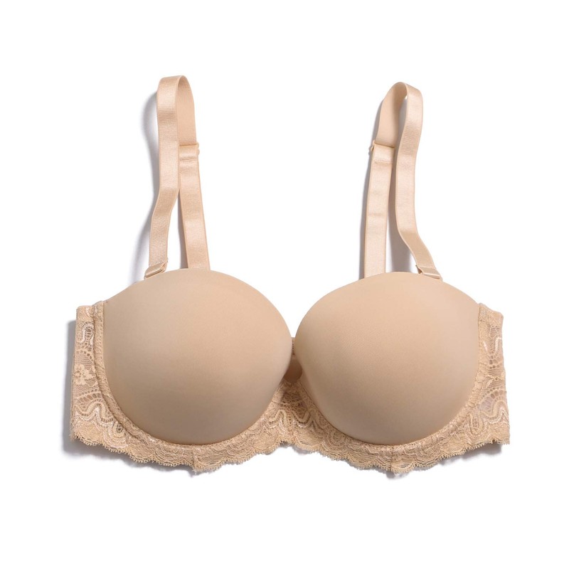 YANDW Strapless Bra Lightly Padded Backless with Multiway Clear Transparent Back Invisible Straps Brassière Women's Full Cup Large Sizes Breasts, nude, 95C