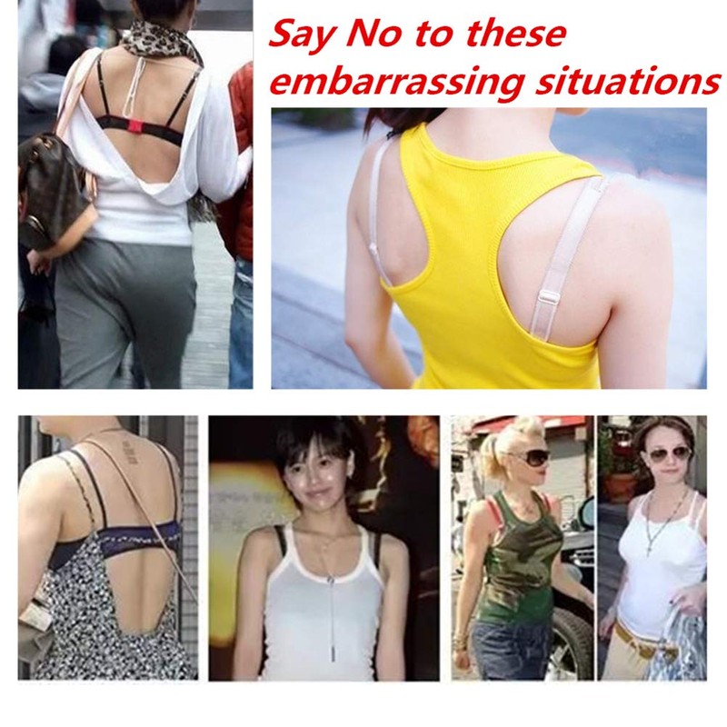 - [Extra Clear Back Band & Invisible Straps] It comes with extra invisible shoulder straps and an extra transparent back band that is perfect for low back and backless clothing. In total, it comes with 1 x pair of fabric ribbons, 1 x fabric back band; 1 x pair of transparent straps, 1 x clear back band.