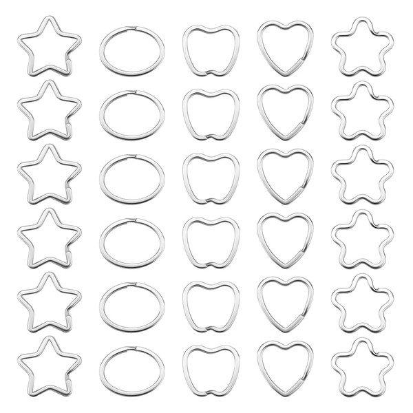 - 5.30 pieces split ring: 5 shapes, namely star, heart, oval, flower, apple, 6 pieces of each size to meet your different needs.