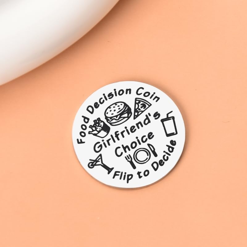 - Easy to Carry and Keep: The girlfriend food decision coin is 30mm in diameter, which is the most proper size, not too big or too small, pretty convenient to carry, the high quality stainless steel allows you to last for a long time, is the best choice as gf birthday gift ideas, anniversary gifts for couple