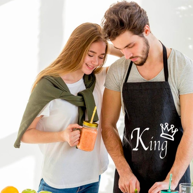 • Funny couple design: aprons for couples are printed with "King & Queen". Cute and cute to express best wishes for each other, can be used as a thoughtful gift for Christmas, wedding, anniversary, Valentine's Day, birthday, bride