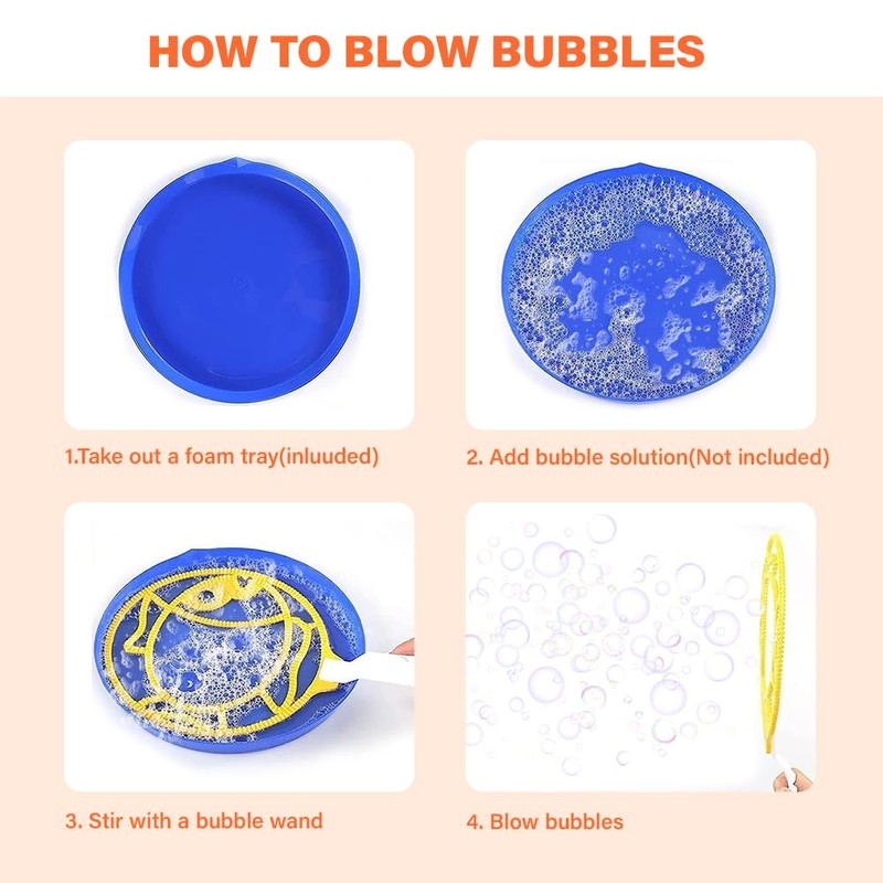 - 【Einfach zu Bedienen】Seifenblasen Blase einfache Bedienung. Gießen Sie einfach etwas Seifenblasenlösung (nicht im Lieferumfang enthalten) auf eine seifenblasen stab und tauchen Sie den Seifenblasenstab in die Schale. Und schließlich schütteln oder blasen Sie den Stab sanft, um viele Blasen zu erzeugen. Wenn unter der Sonne, sie sehen aus wie Regenbogenfarben, das ist sehr schön.