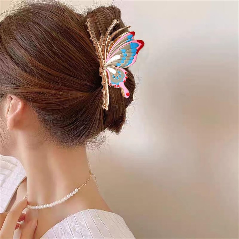 yangzerang Butterfly Hair Claw Clips Clamps Large Non-Slip Strong Metal Butterfly Hair Clips Sparkly Hair Jaw Clips Cute Hair Claws Big