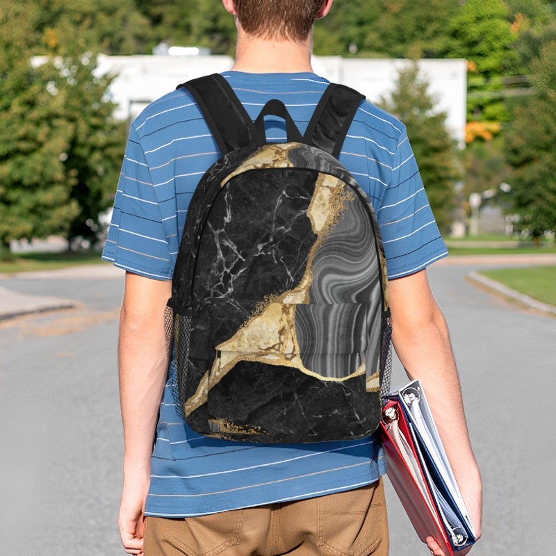YANGZHI Marble Black And White Gold 15 Inch Backpack Laptop Travel Bag For Men Women With Multiple Pockets Casual Hiking Gym Sport