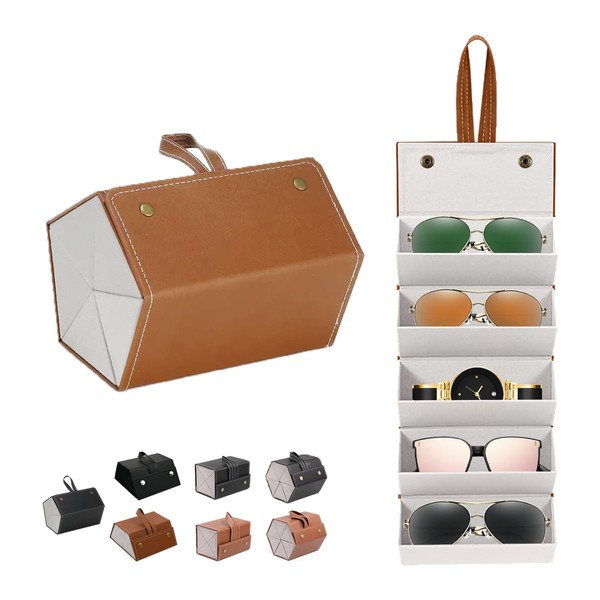 YanHLQJY Sunglasses Organizer Case,Sunglasses Case, Multi Sunglass Travel Case,Travel Sunglasses rganizer,Perfect Sunglasses Holder for Travelers and Multi-Eyeglass Owners (Brown, 5 Slots)