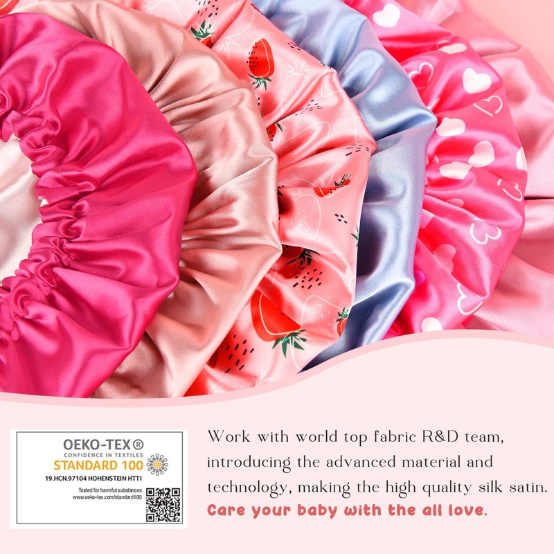 - WIDE APPLICATION: these kids satin bonnet can be applied for children's sleeping cap, washing cap, and tools for girls to fix their hair while they are making up, washing face, or showering; The silky surface of the double-layer design reduces friction between your baby's hair and pillow, preventing frizz, tangles, and hair loss