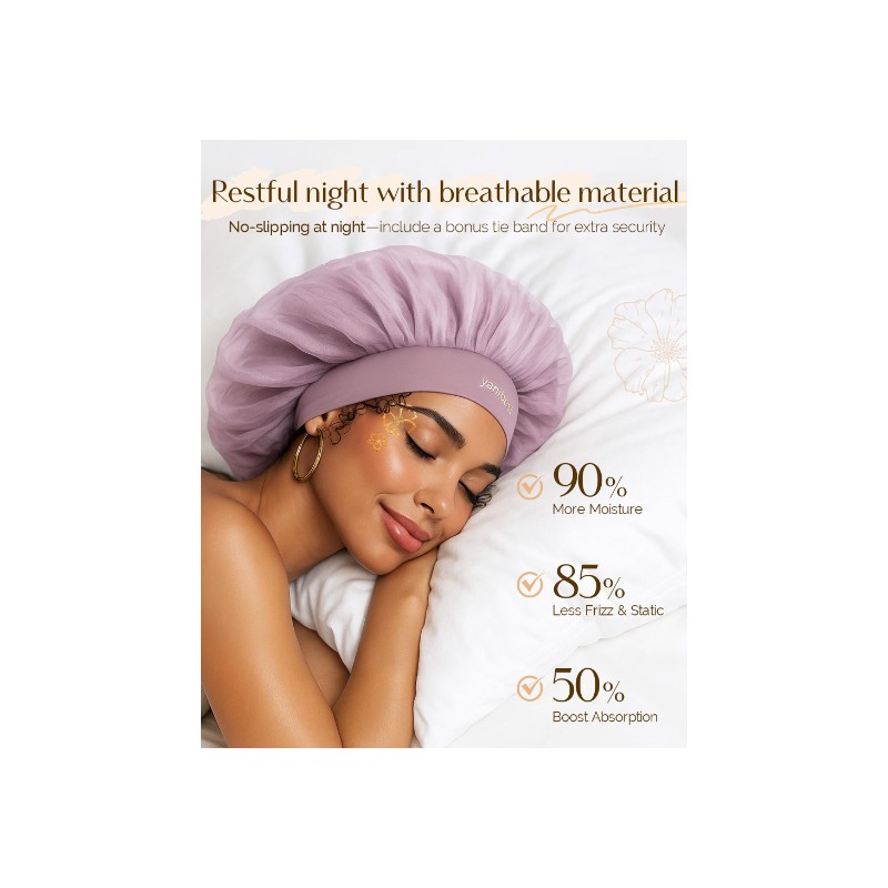 YANIBEST Silk Bonnet for Sleeping, Butter-Satin Sleep Cap to Reduce Frizz, Breathable Lightweight Hair Wrap for Curly Hair