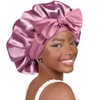 - High Quality Material The part of the cap is made of high quality pink silky satin, which is breathable and smooth, also can preserve the moisture of the hair. The long band is made of stretchy spandex material. Compared to conventional elastic hoods, this hood ensures that you do not feel constricted and leaves no pressure points on the head, and it is much more comfortable.